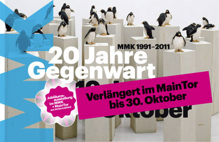 Die Jubiläumsausstellung „MMK 1991-2011. 20 Jahre Gegenwart“ des MMK Museum für Moderne Kunst in Frankfurt am Main wird wegen des großen Erfolges auf dem MainTor-Areal bis zum 30. Oktober verlängert. Seit der Eröffnung am 19. Juni verzeichnete die Präsentation anlässlich des 20-jährigen Bestehens des MMK rund 80 000 Besucher.